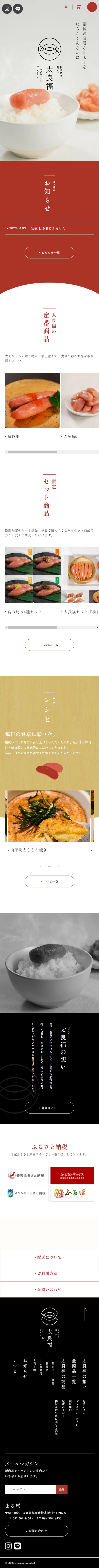 福岡の博多に工場を待つ明太子の製造、販売を行っているまる屋さんのECサイトのリニューアルをご依頼いただきました。