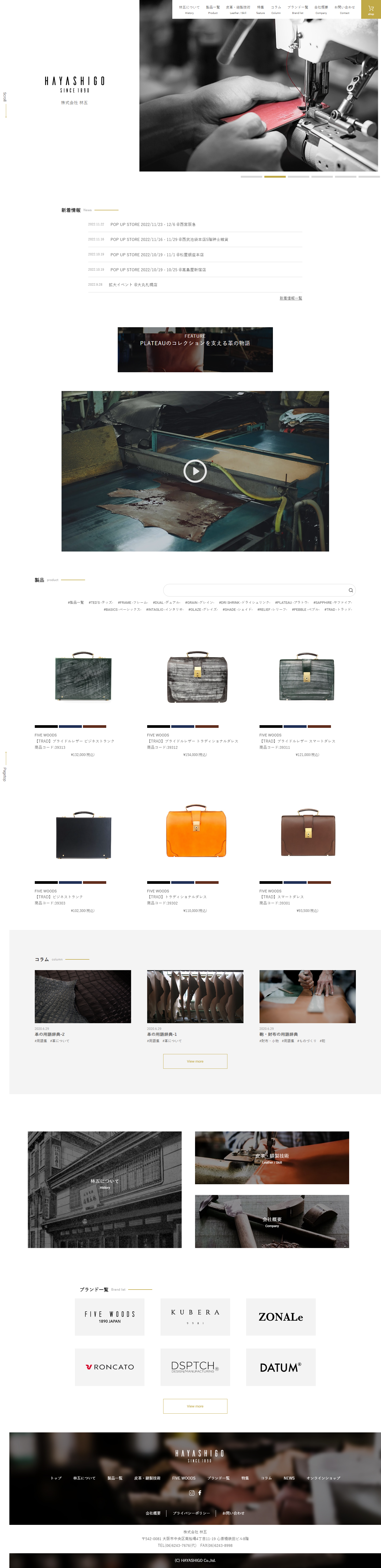 1890年創業、鞄の企画、製造、卸売業をされている大阪の「株式会社 林五」様のコーポレートサイトをリニューアルいたしました。 130年を越える歴史と培われてきた職人の技術をイメージとデザインで表現致しました。 また、鞄のページでは、カラーの種類や商品写真の見せ方もわかりやすいよう工夫しております。