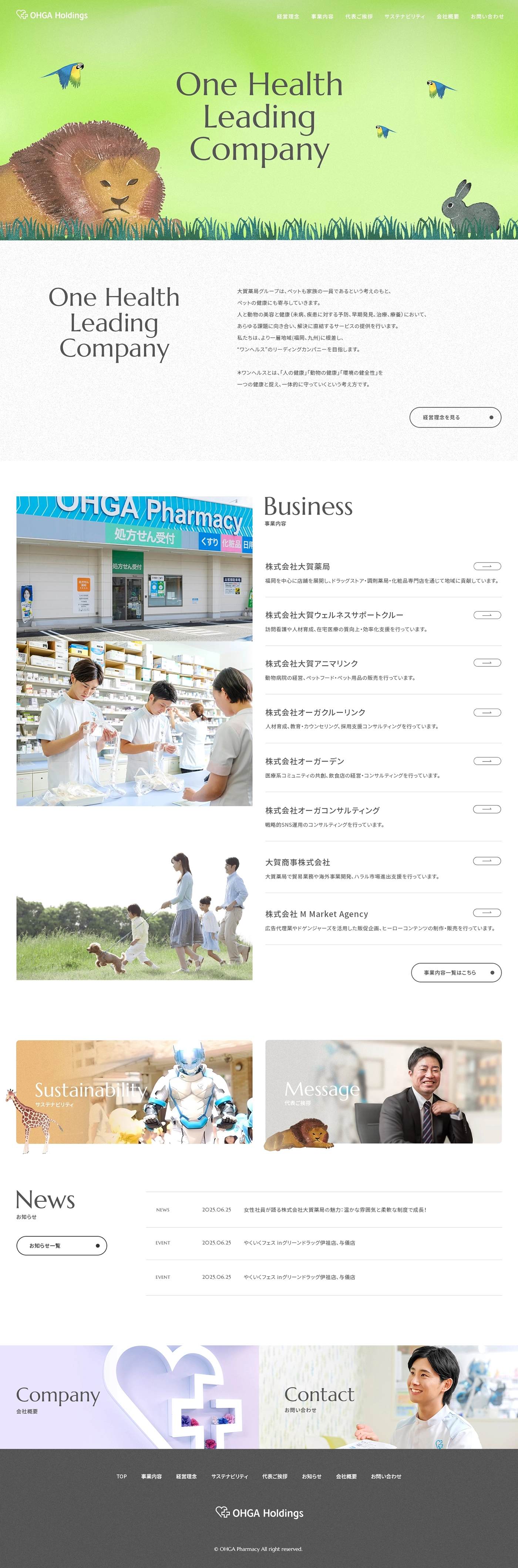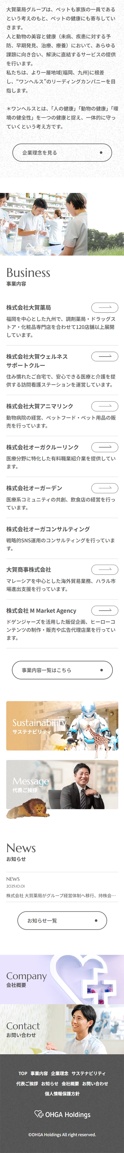 1902年創業の歴史を持つ大賀薬局様のホールディングス体制移行に伴い、親会社となる株式会社オーガホールディングスのコーポレートサイトを制作しました。