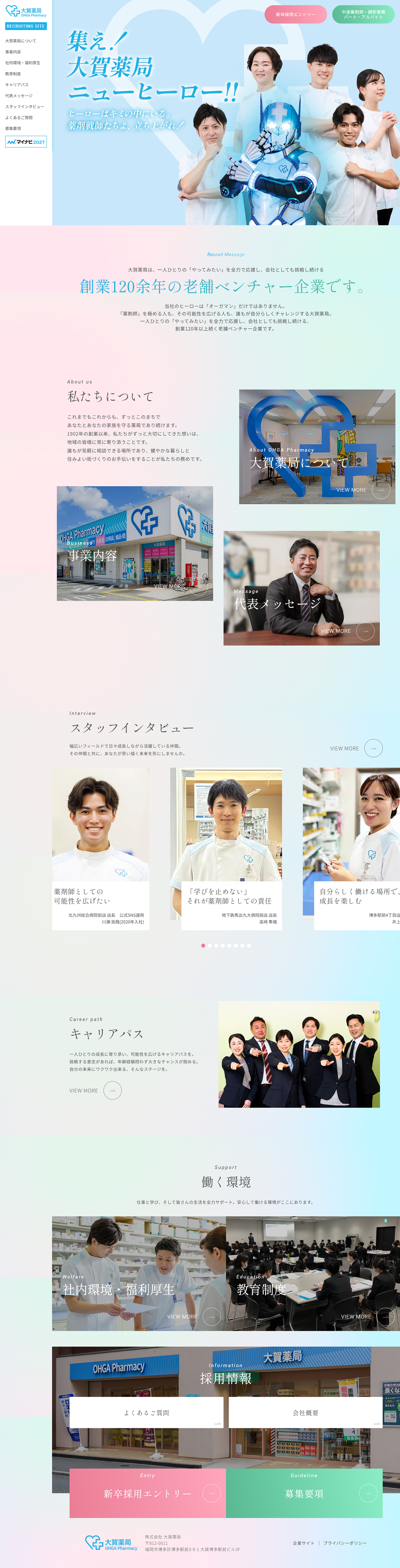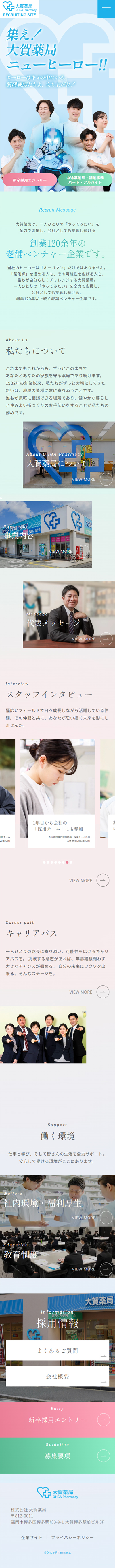 1902年創業、120年以上の歴史を持つ地域密着型薬局チェーン大賀薬局様の採用サイトリニューアルを手がけました。