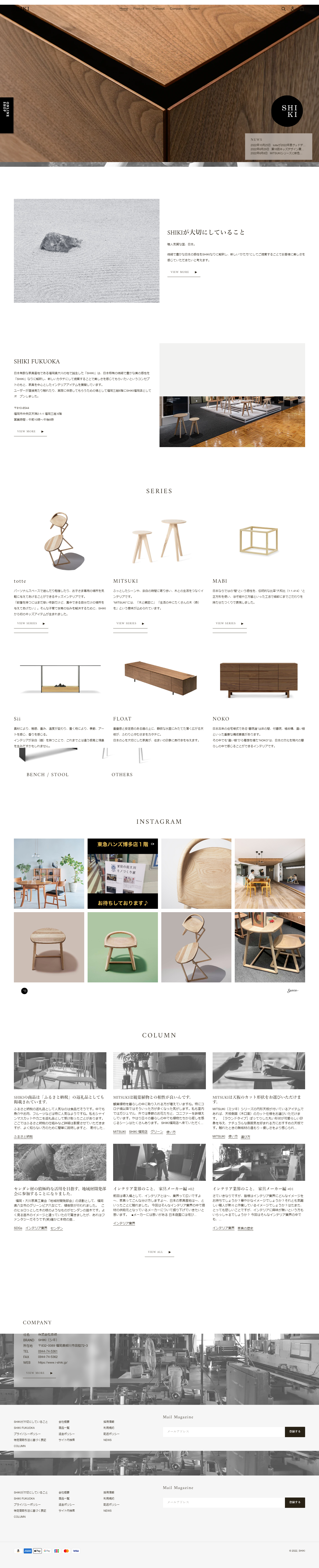 柳川の家具メーカー「志岐」様のECサイト。 shopifyを使用して構築しています。商品の価値が伝わるよう、シンプルでブランド感を損なわないデザインにしました。