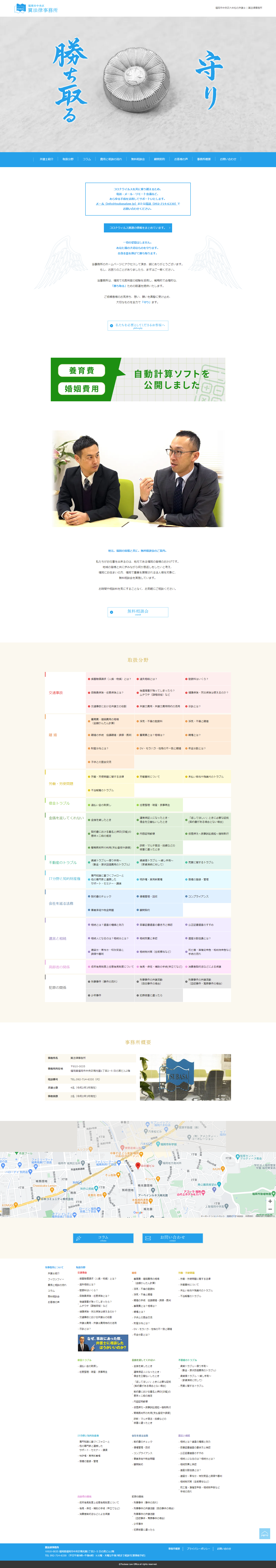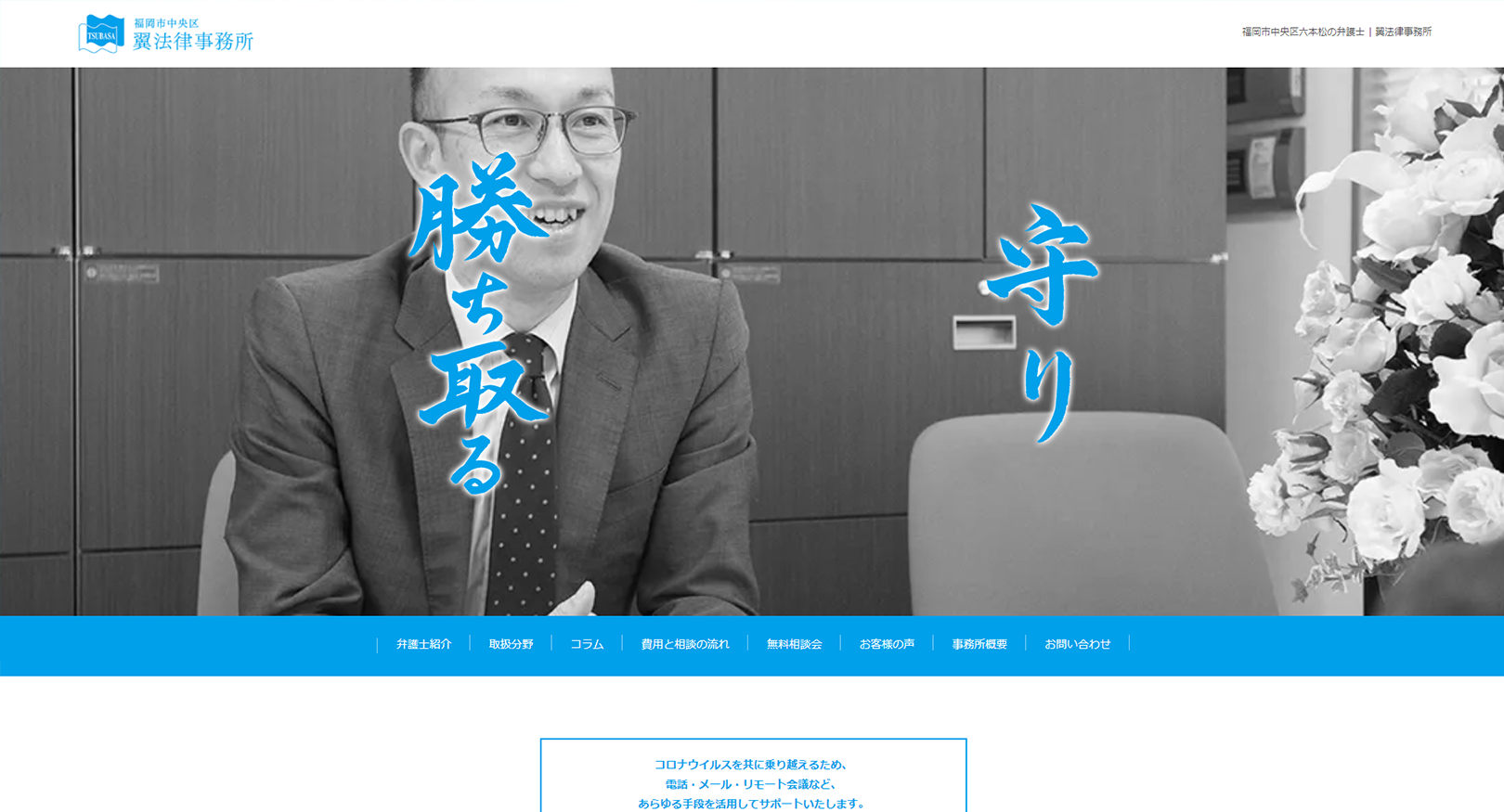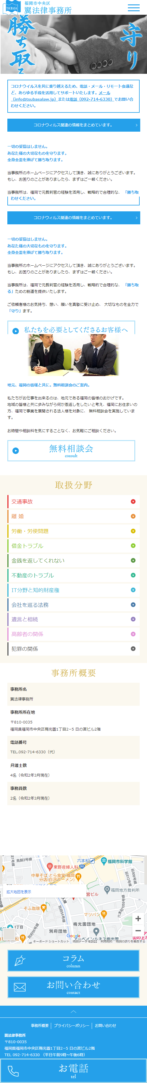 福岡市中央区六本松で弁護士事務所を行っております翼法律事務所様のサイトリニューアルを行わせていただきました。元裁判官の弁護士様も在籍しており、様々な分野に強い法律事務所様です。