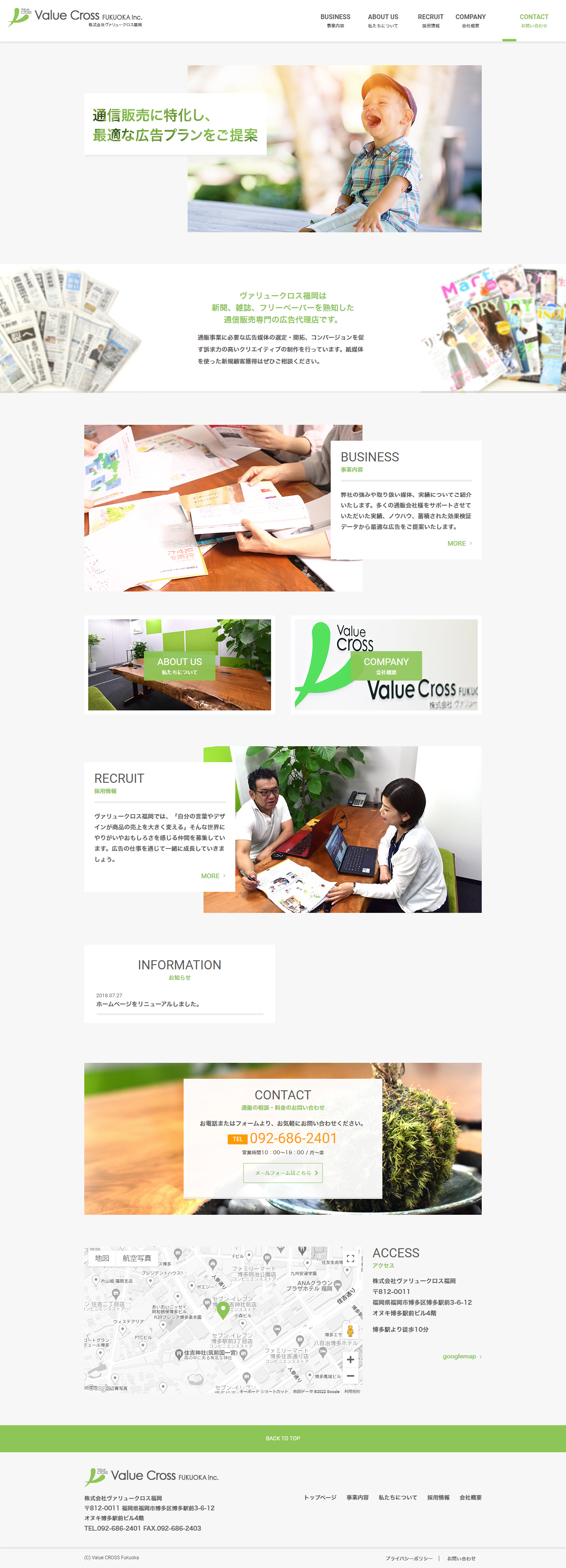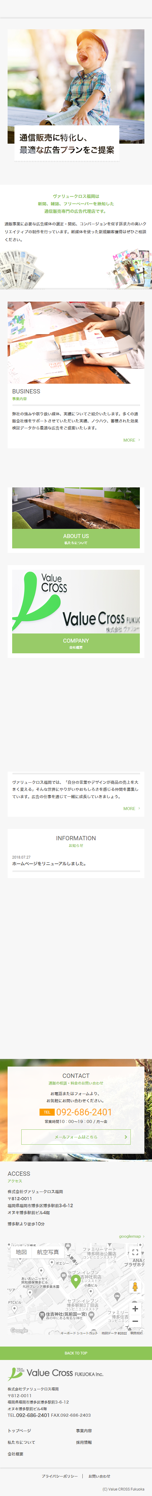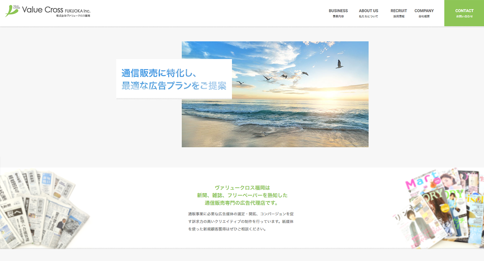 福岡で紙媒体の広告代理店を行っております「ヴァリュークロス福岡」様のサイトリニューアルを行わせていただきました。ヴァリュークロス福岡様は広告代理店でありがちな「広告枠を売る」というスタイルではなく、クライアントの要望や悩みをヒアリングし、媒体提案や原稿制作だけなく、客単価やリピート率を見て総合的にプランニングを行っている代理店様です。
