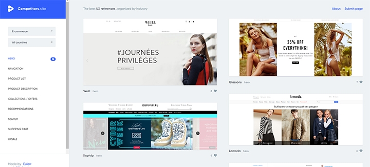 ランディングページ特化型のギャラリーサイト。色や業種で絞り込めます。Competitorshttp://competitors.site/