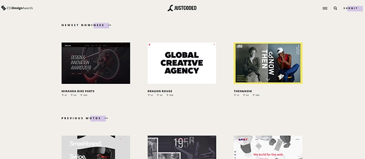 ユーザーの投票によりサイトが評価されるのが特徴の老舗サイト。「デザイン/ユーザビリティ/クリエイティビティ/コンテンツ」などの項目毎に点数がつけられています。CSS Design Awardshttps://cssdesignawards.com/