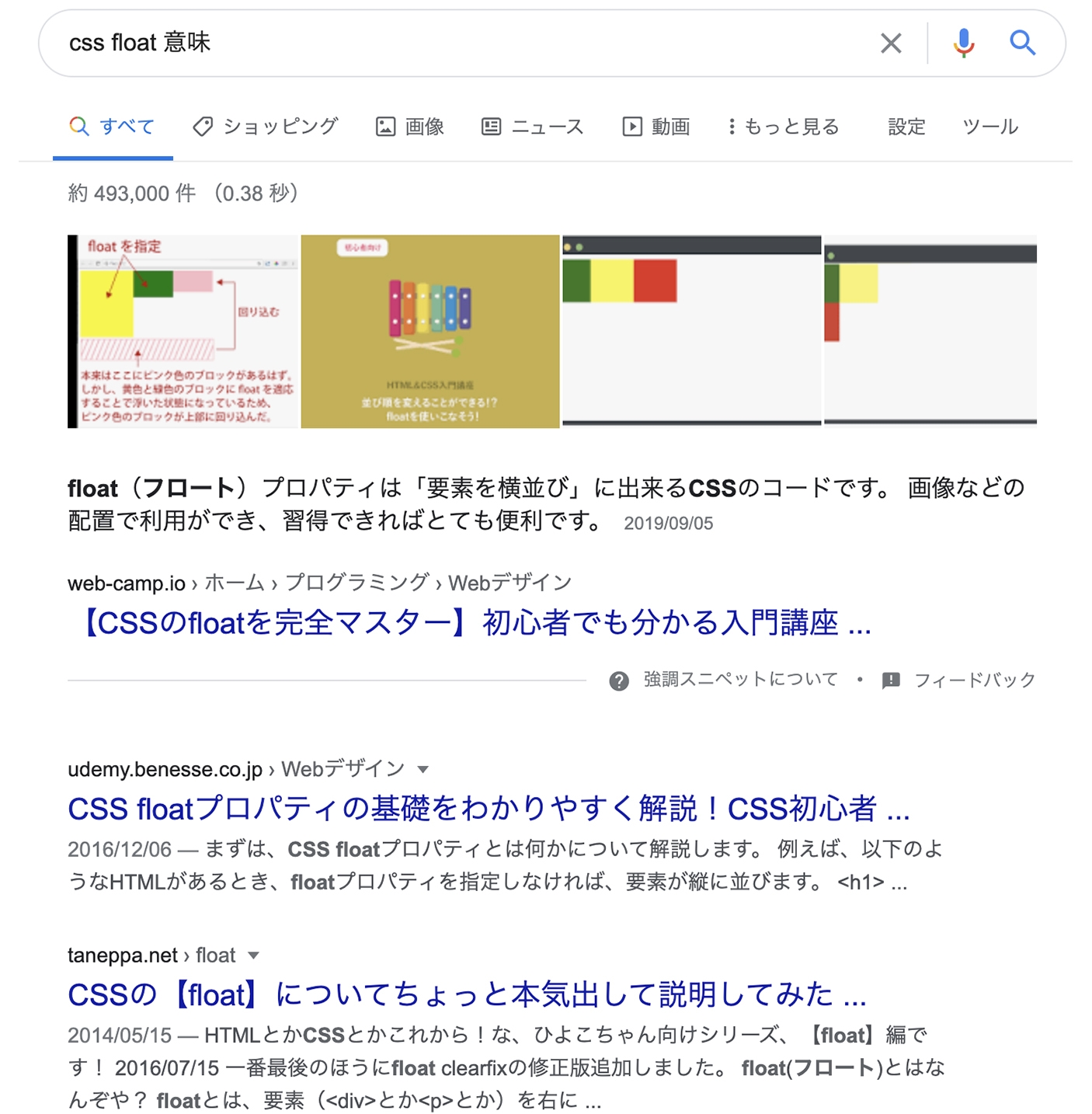 例えば、極端ですが単純に「float 意味」などで調べるとしましょう。