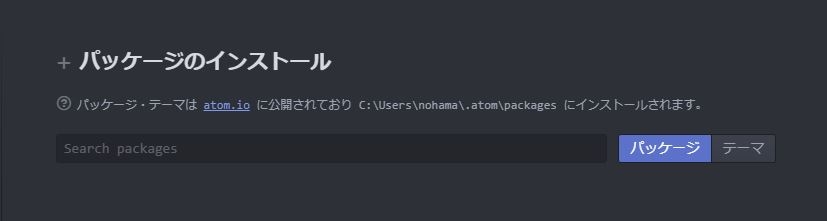 scss_lintまでインストールできたら、今度はAtomのプラグインを追加します。環境設定→インストールと進み