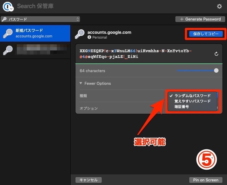 また、新規でパスワードを生成する場合、『文字数』『記号』『数字』を選択するだけで、複雑なパスワードを生成してくれます。