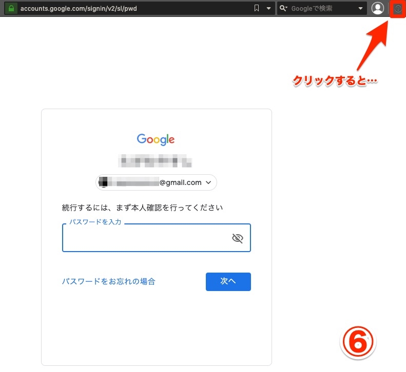 6.ログイン画面にてパスワードを入力する際に、右上の1Passwordのアイコンをクリックし、該当のアイテムを選択すると…