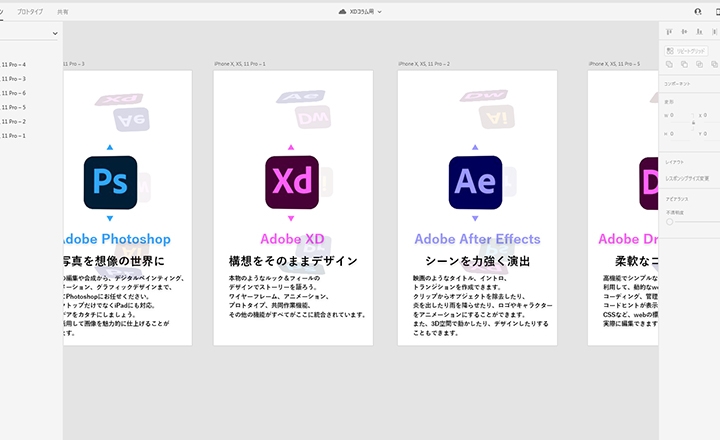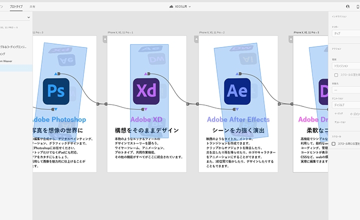 実際に、WEBやアプリのデザインだけではなく、動きや導線を視覚的に再現したプロトタイプの作成、また、それらを誰とでも共有しレビューを行えるという点がかなり魅力的だと思います。