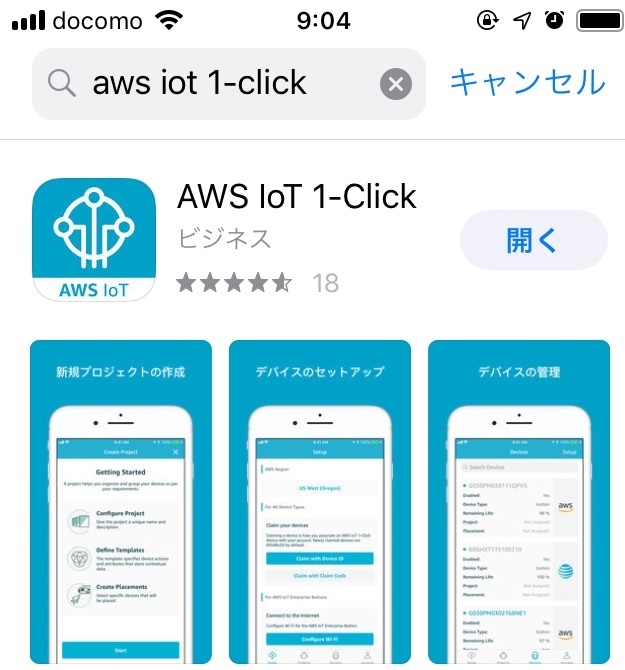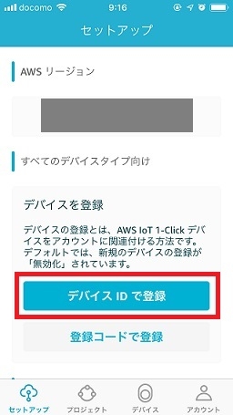 スマートフォンに「AWS IoT 1-Click」モバイルアプリをインストール