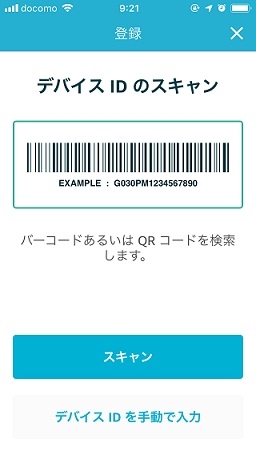 「デバイスIDで登録」を選択して、「AWS IoT Enterprise Button」の側面に貼られている、バーコードを読み込めばデバイスが追加されます(もしくは、手入力でも追加は可能です)。