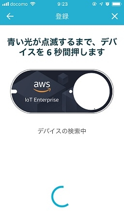 その後に、以下のような画面が表示されるので、ボタンを6秒間長押しして、ランプが青く点滅するのを確認します。
