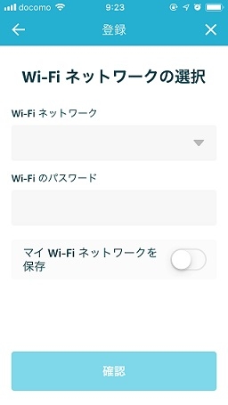 「AWS IoT Enterprise Button」が正しく認識されれば、Wi-Fi情報の入力を求められるため、入力して「確認」ボタンを押します。