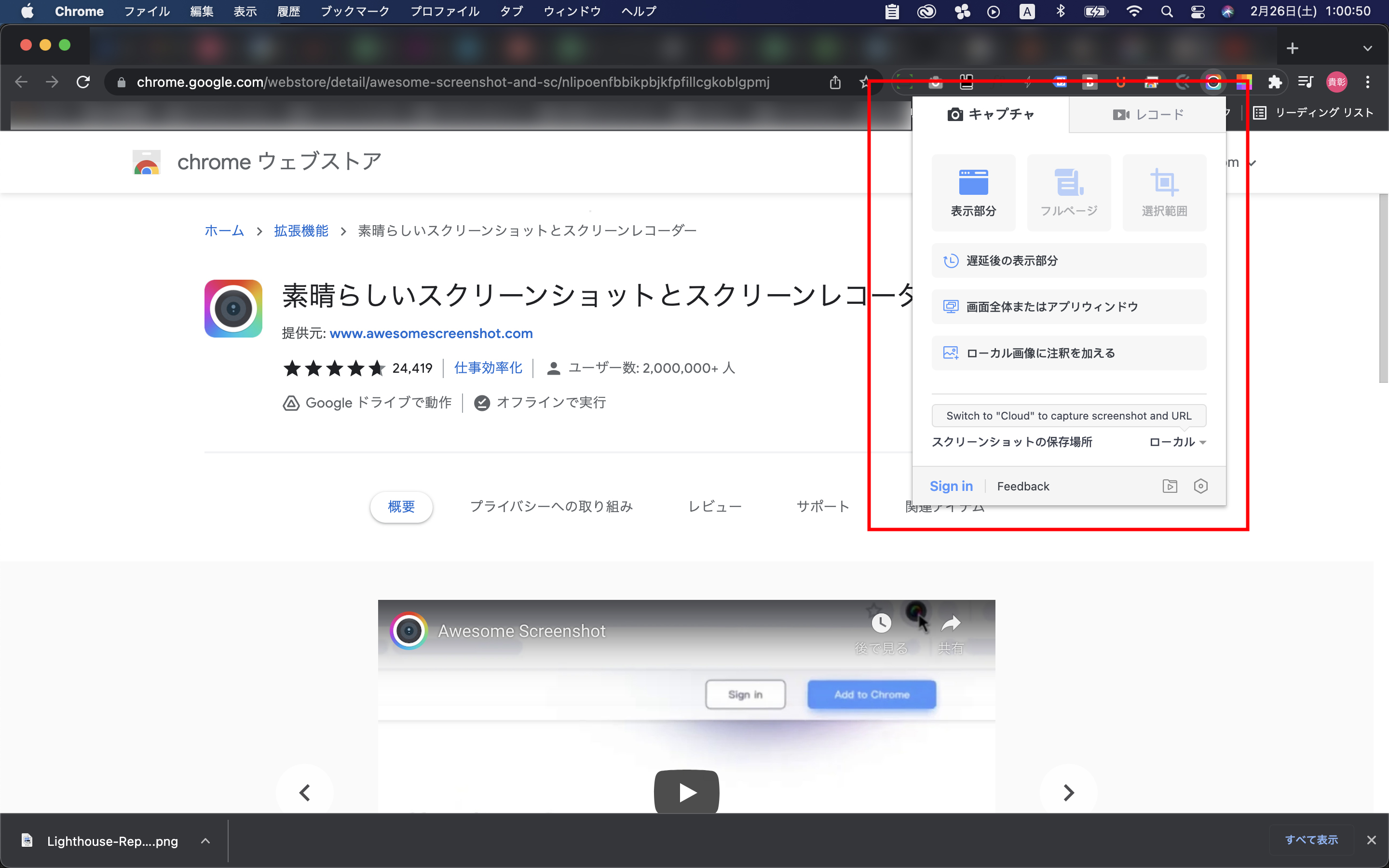 Chromeで開いているwebサイトのキャプチャや録画を行ってくれる拡張機能です。