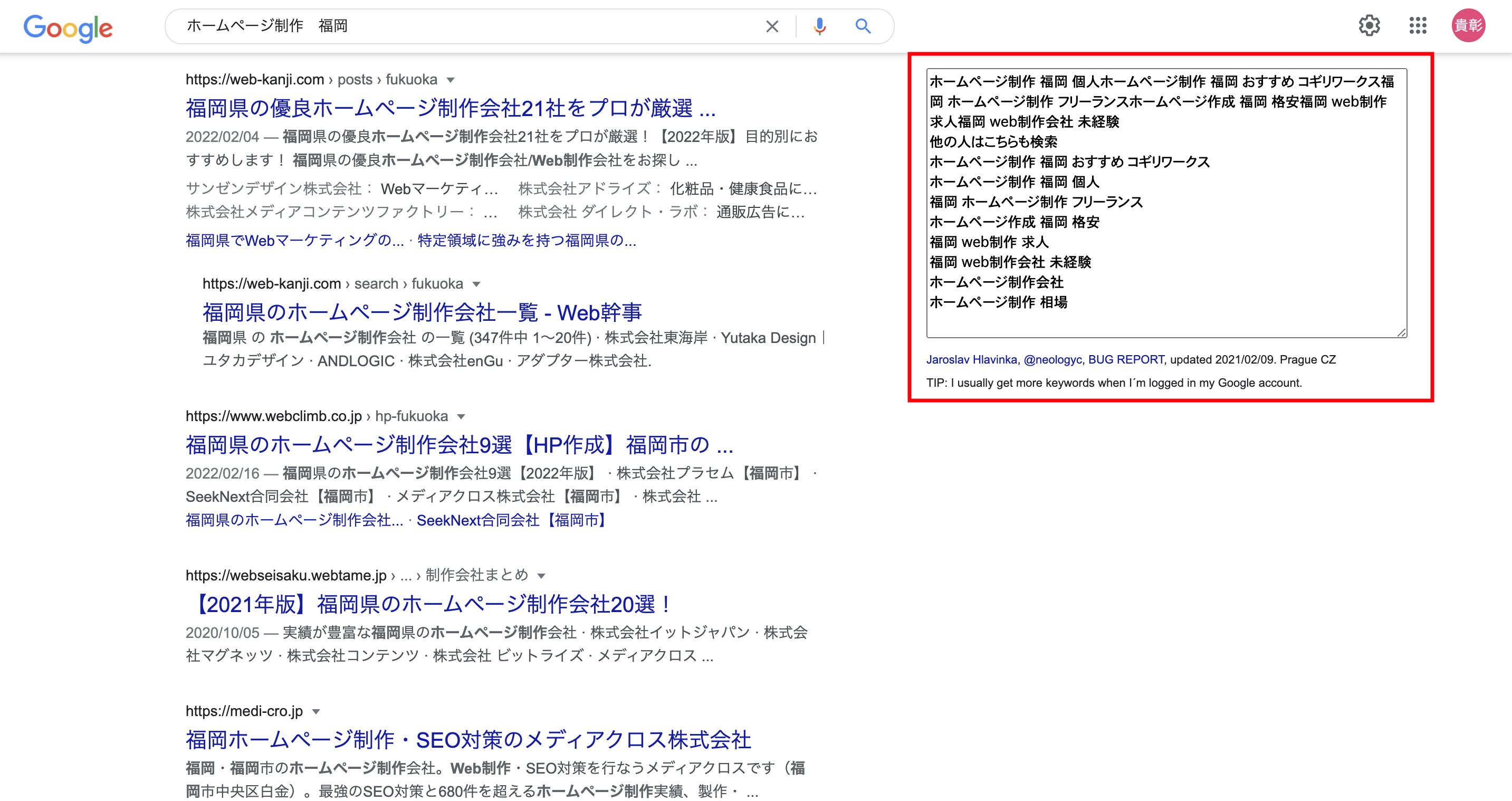 例えば弊社に関係する検索キーワードは「ホームページ制作 福岡」なのですが、