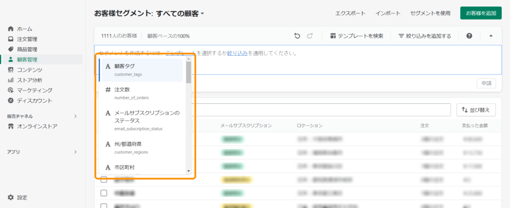 https://help.shopify.com/ja/manual/customers/customer-segmentation/customer-segments/customer-segmentation-reference/customer-segment-shopify