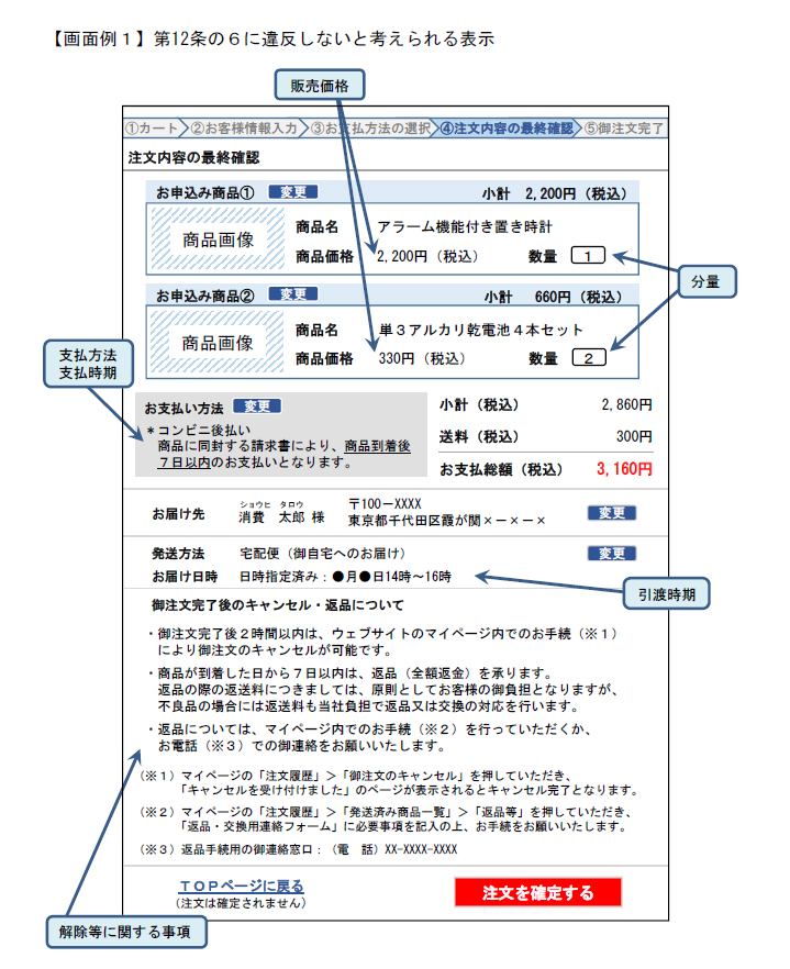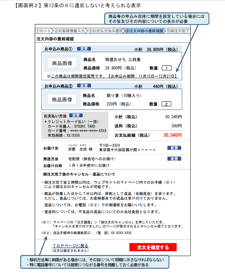 (引用:(別添7)通信販売の申込み段階における表示についてのガイドライン)