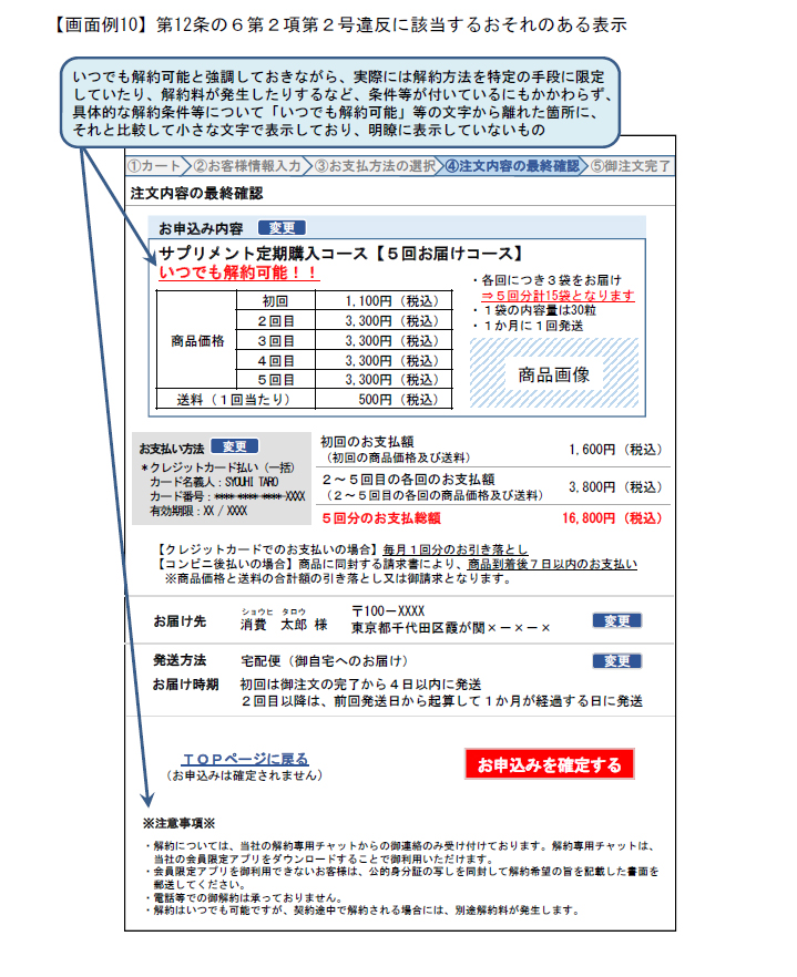 違反とならない最終確認画面例