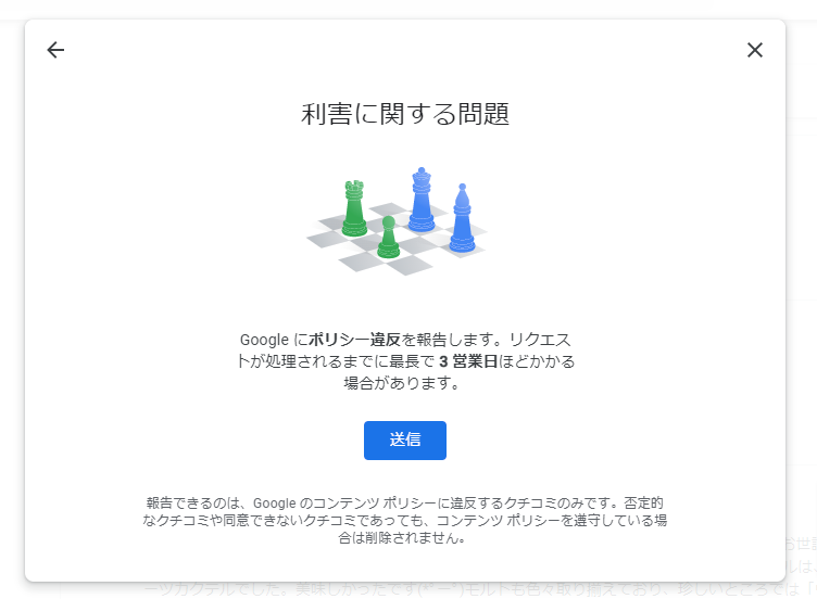 あくまでGoogleポリシーに違反しているものが削除対象となるため、判断がつかない場合は削除がされません。