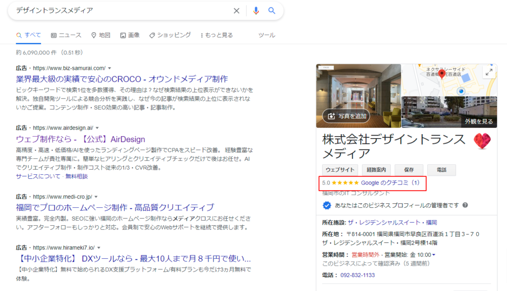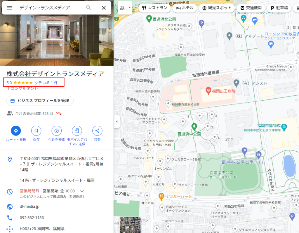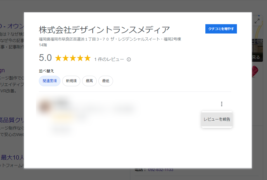 検索結果に表示されるGooglemap上の口コミ。