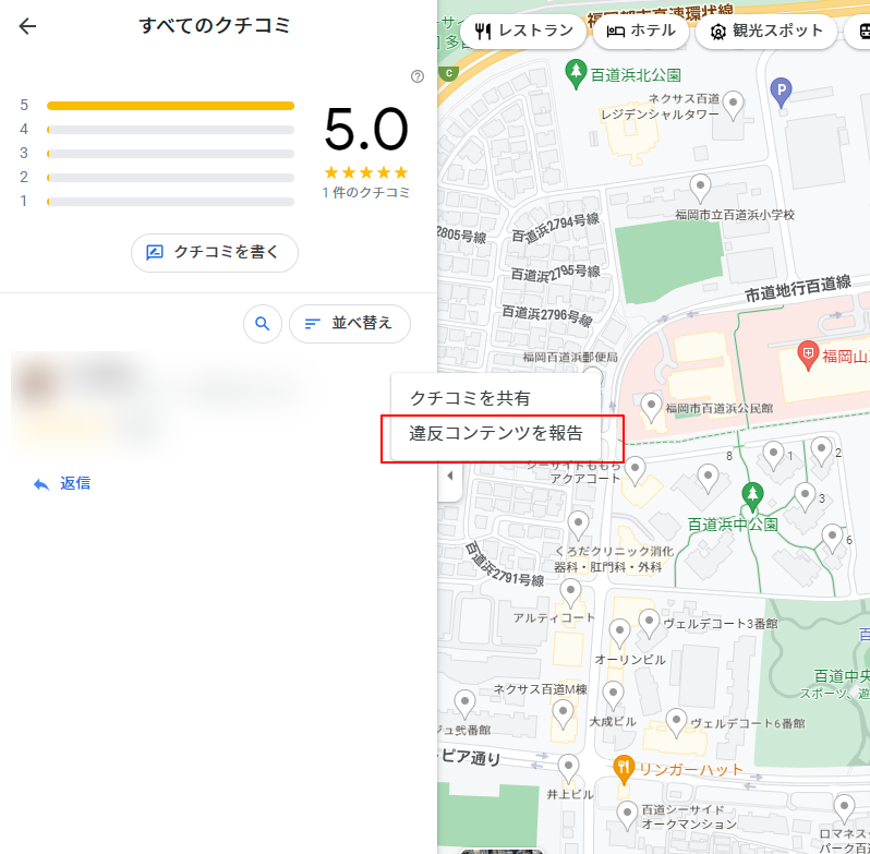 実際に悪質な口コミなどがある場合は、Googleへ報告し削除依頼を行います。