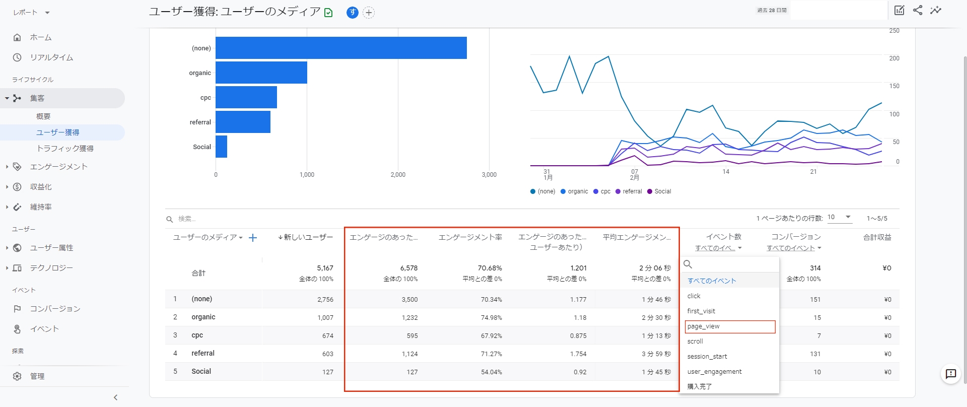 メニュー内でもエンゲージメントに関する指標が追加されています。