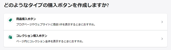 「Buy Button」から任意の商品を選択し、カートボタンのレイアウトしてからコードを生成します。