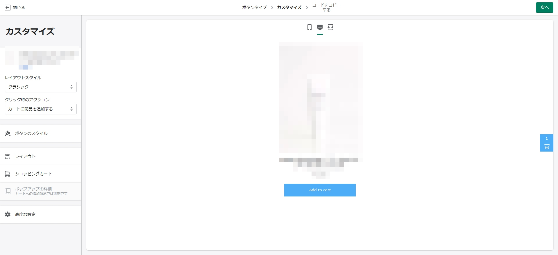 ボタンのスタイルを直感的にカスタマイズできるのもいいのですが、一番は商品のポップアップを簡単に実装できるところですね。