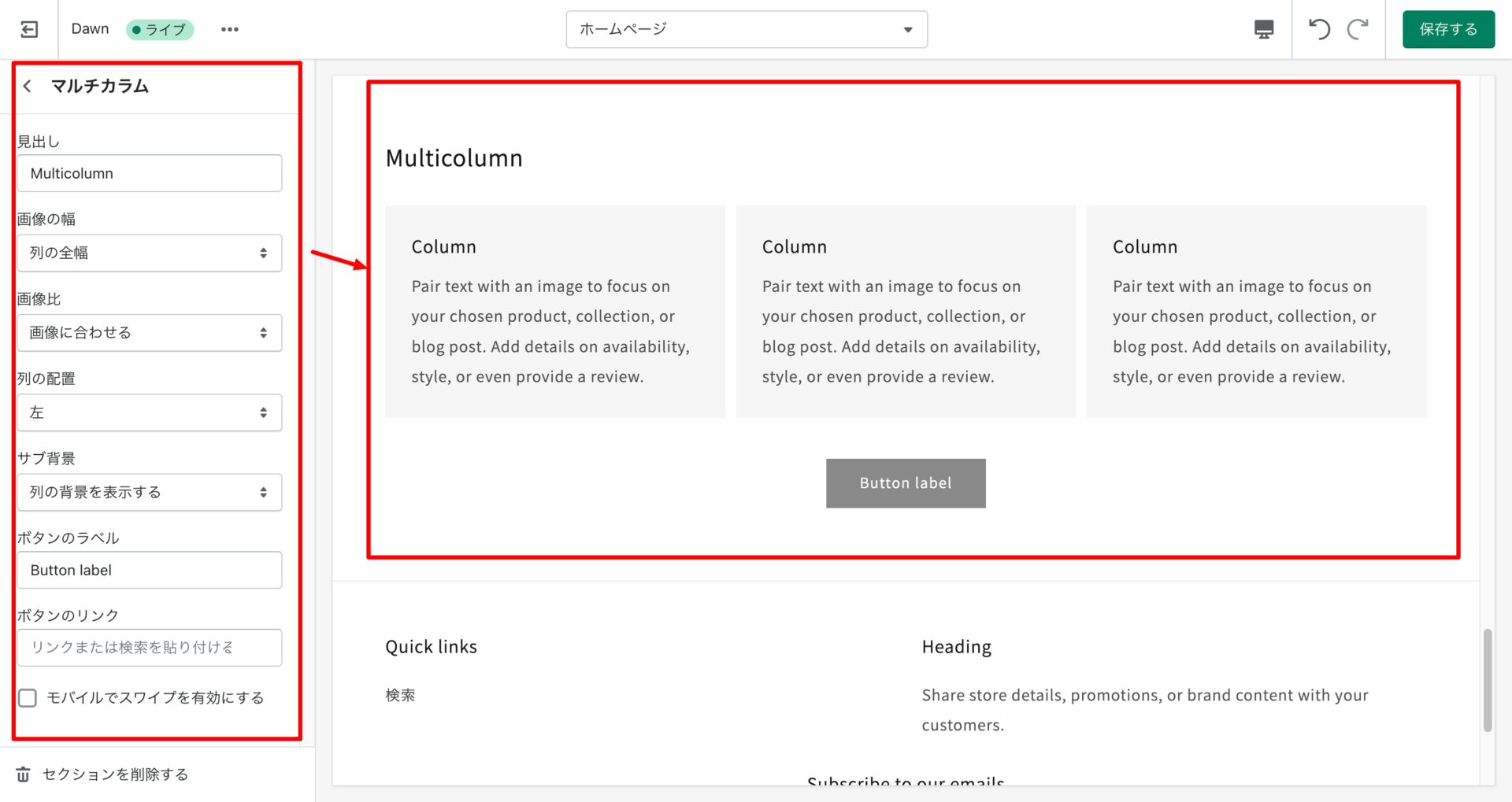 複数の項目をまとめて表示したい時にはこのマルチカラムを使用します。