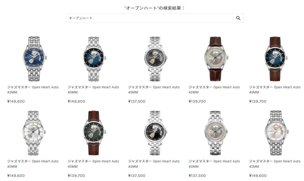 類義語グループを設定していない場合、商品名を正しく「オープンハート」と入力すると当然ですが、該当商品が検索結果に表示されます。