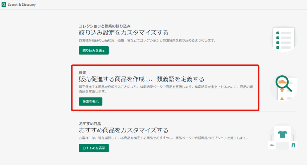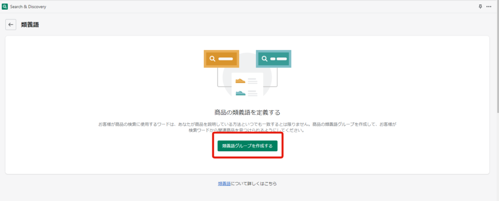 お客様が商品の検索に使用するワードは、あなたが商品を説明している方法といつでも一致するとは限りません。商品の類義語グループを作成して、お客様が検索ワードから関連商品を見つけられるようにしてくださ