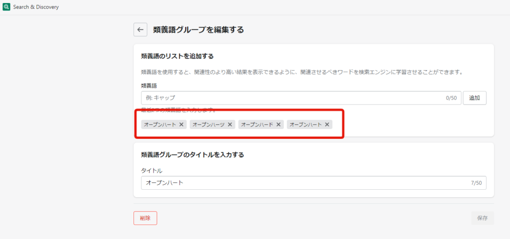 類義語グループはいくつも登録できるので、ECサイトの主要商品についてはグループを作成して、検索からの離脱を減らしていきましょう。