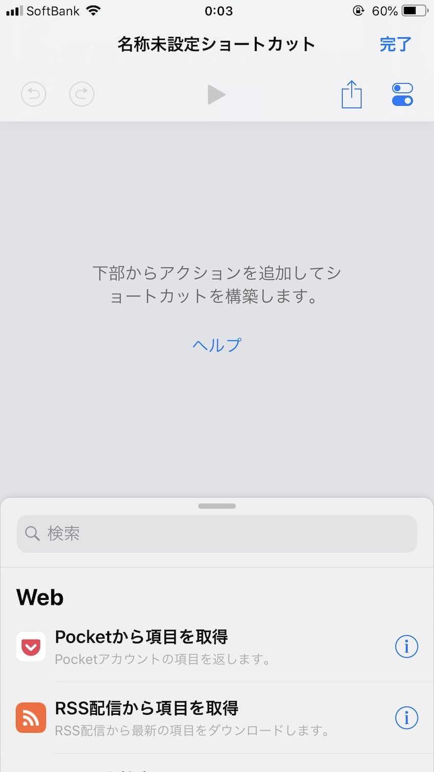 それでは、上記の作業を1タップで行えるショートカットを作成していきます。