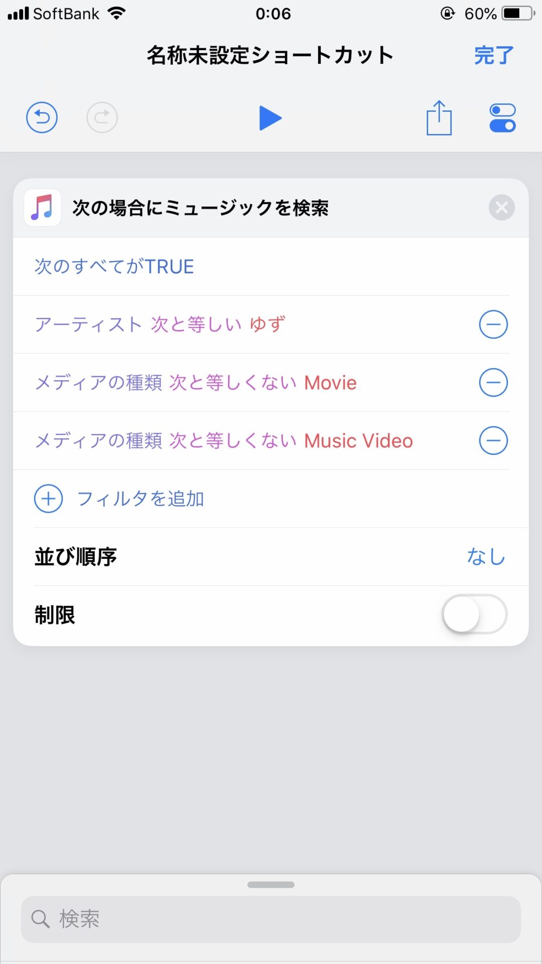 [フィルター]の追加をタップすると、ミュージックから曲を選択する際の条件を登録します。