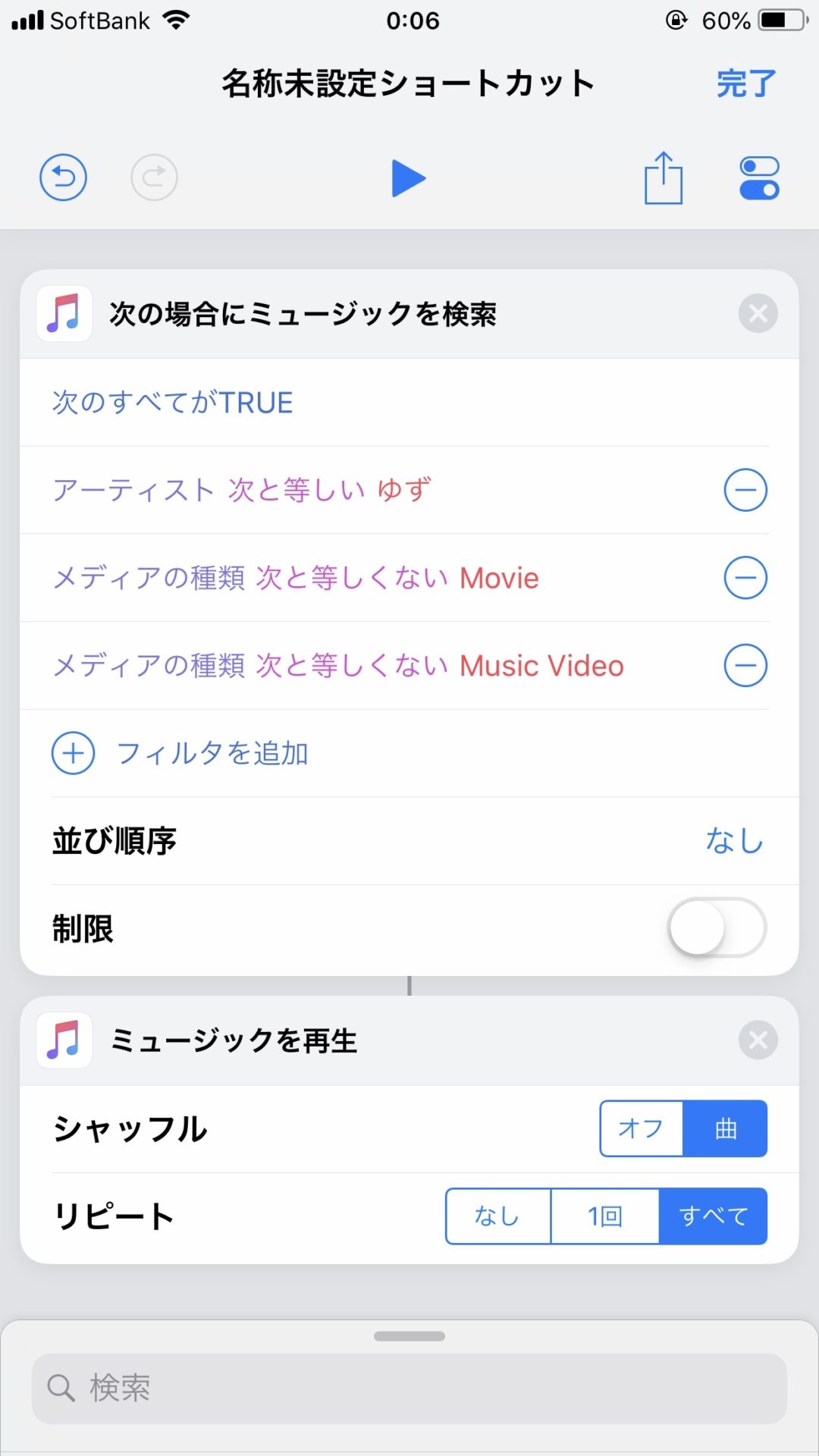 今回は、完全に私の趣味ですが、ミュージックのアプリで「ゆず」の全曲シャッフル&リピートで再生するショートカットを作りたいと思います。