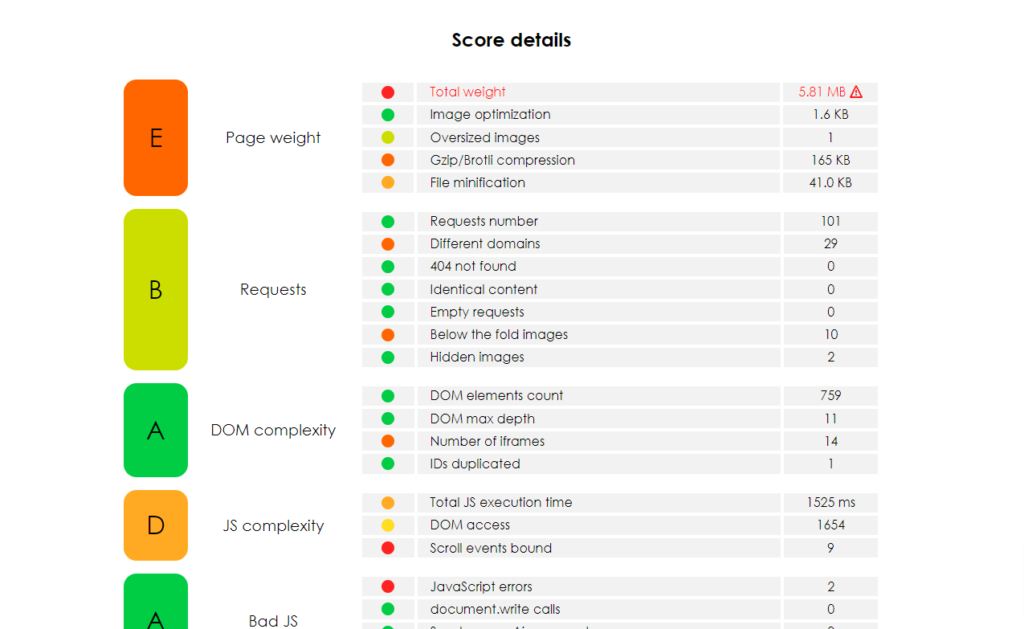 Yellow Lab Toolsは海外のサービスですが、上記はサイトの負荷状況をわかりやすく判定してくれます。